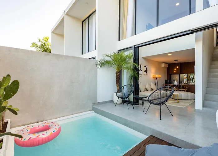 它距离城市中心仅2公里。 从别墅到芬兰人休闲俱乐部开车约需10分钟。 4 Mins To Beach/Finns/Atlas - New Luxe Pool Loft距离Lawar Kuwir Men Koko大约600米。